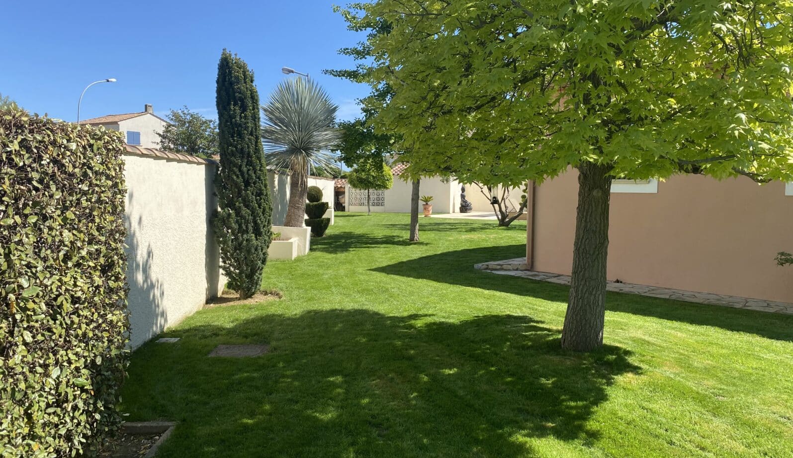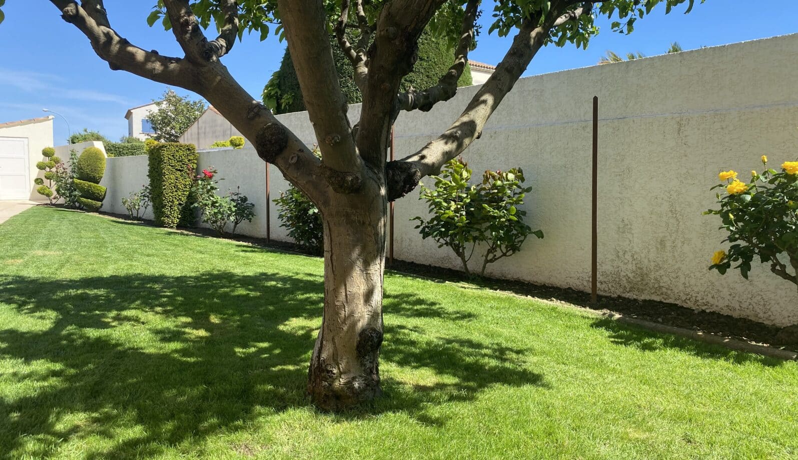 Le choix d’un gazon anglais, rendu possible par la présence d’un forage, combiné à l’utilisation d’un engrais à action rapide (NPK), a permis d’obtenir un résultat verdoyant en seulement trois semaines. Grâce à une gestion experte incluant la préparation de la terre au motoculteur et un suivi d’entretien rigoureux (tontes régulières, apports d’engrais saisonniers), le propriétaire peut désormais profiter d’un extérieur harmonieux et sans contrainte pour sa retraite.
